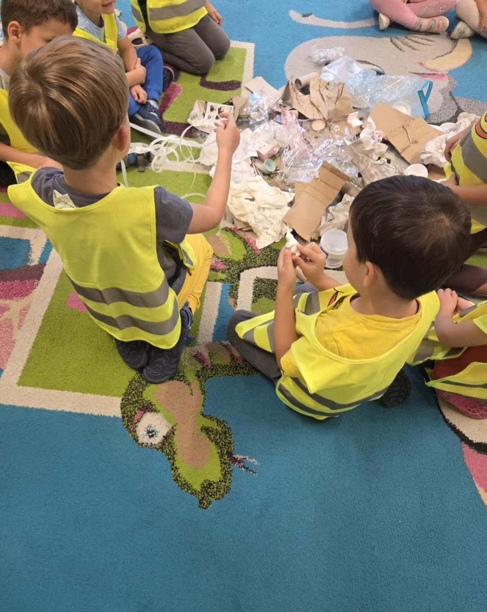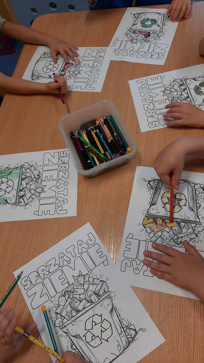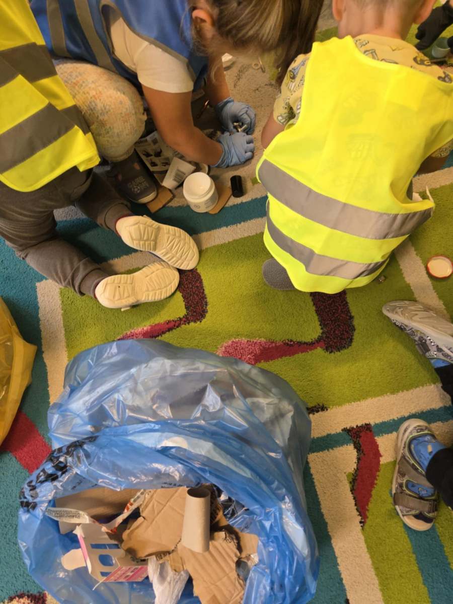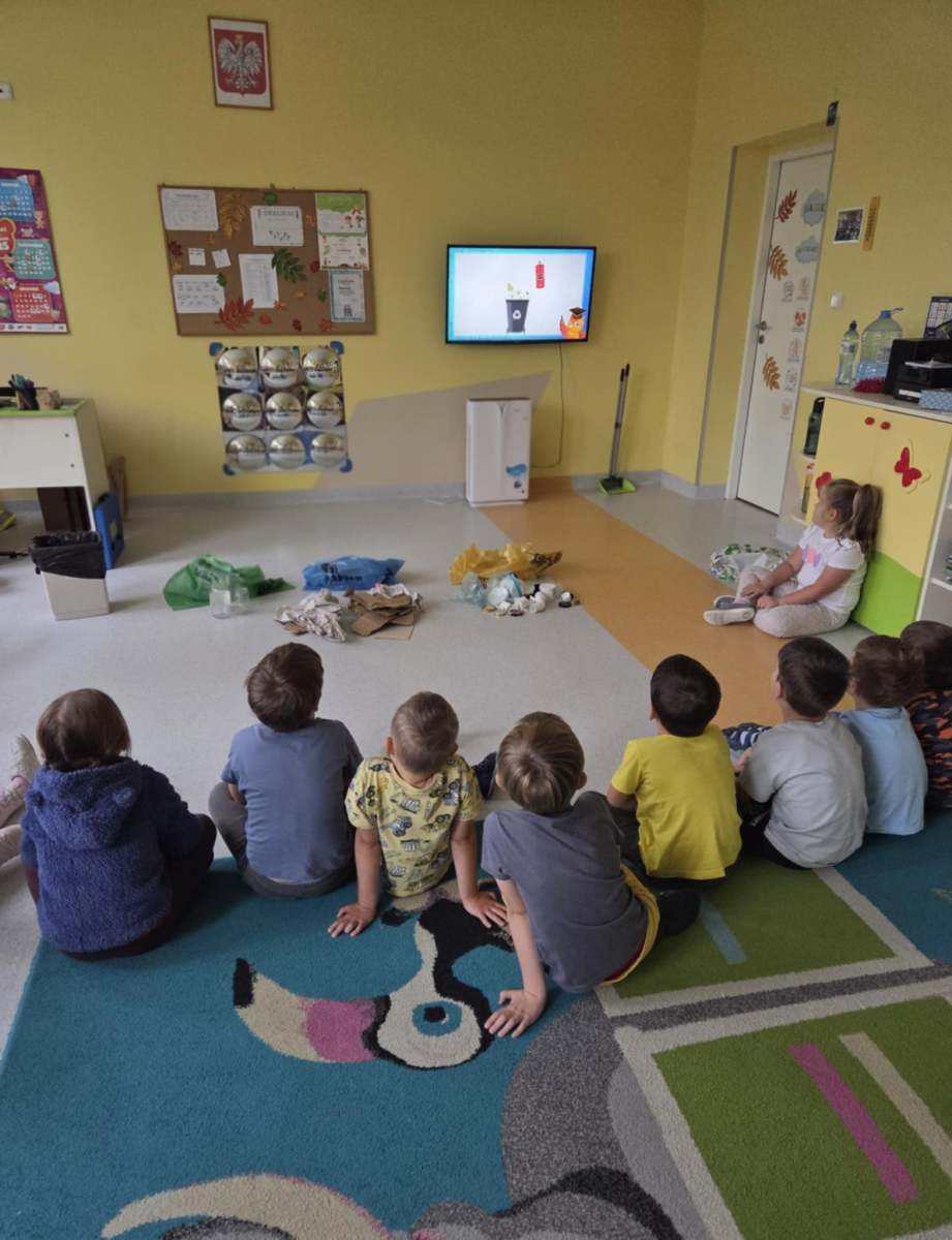 Dzieci dowiedziały się, jak ważne jest dbanie o środowisko i dlaczego warto segregować odpady. Poznały zasady wrzucania surowców do odpowiednich pojemników, a następnie z ogromnym zaangażowaniem wykorzystały zdobytą wiedzę, porządkując swoją salę.