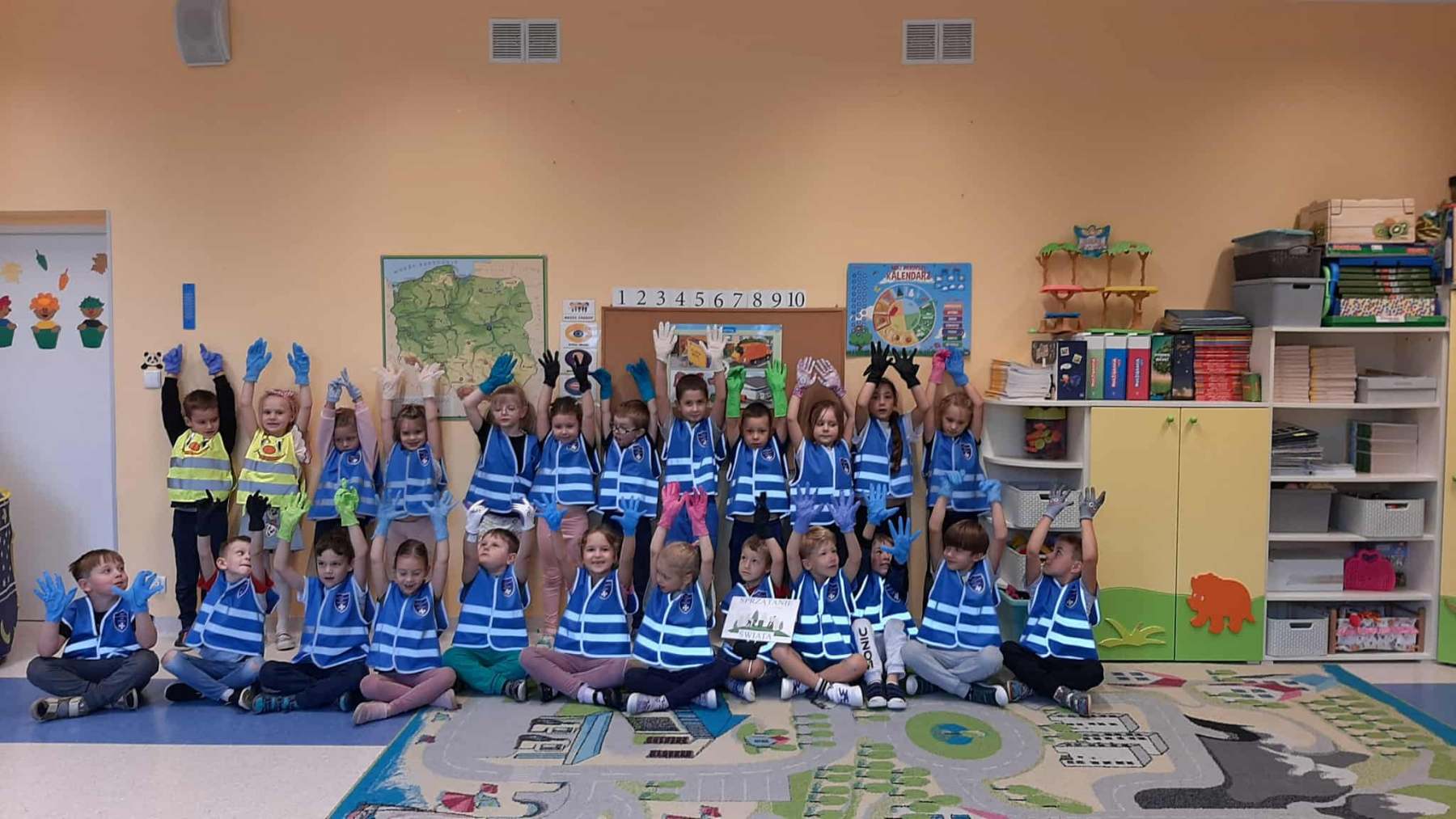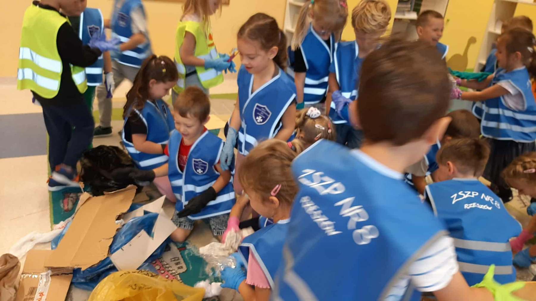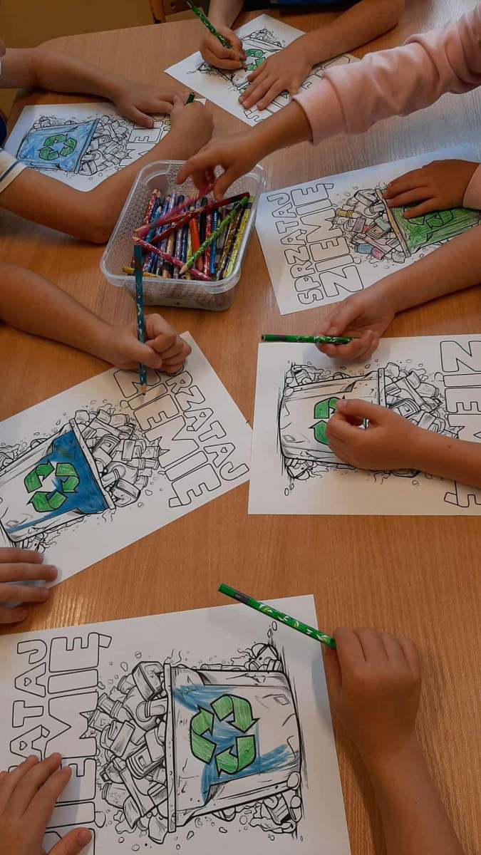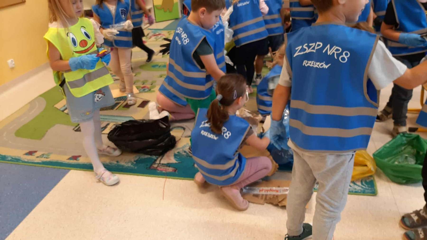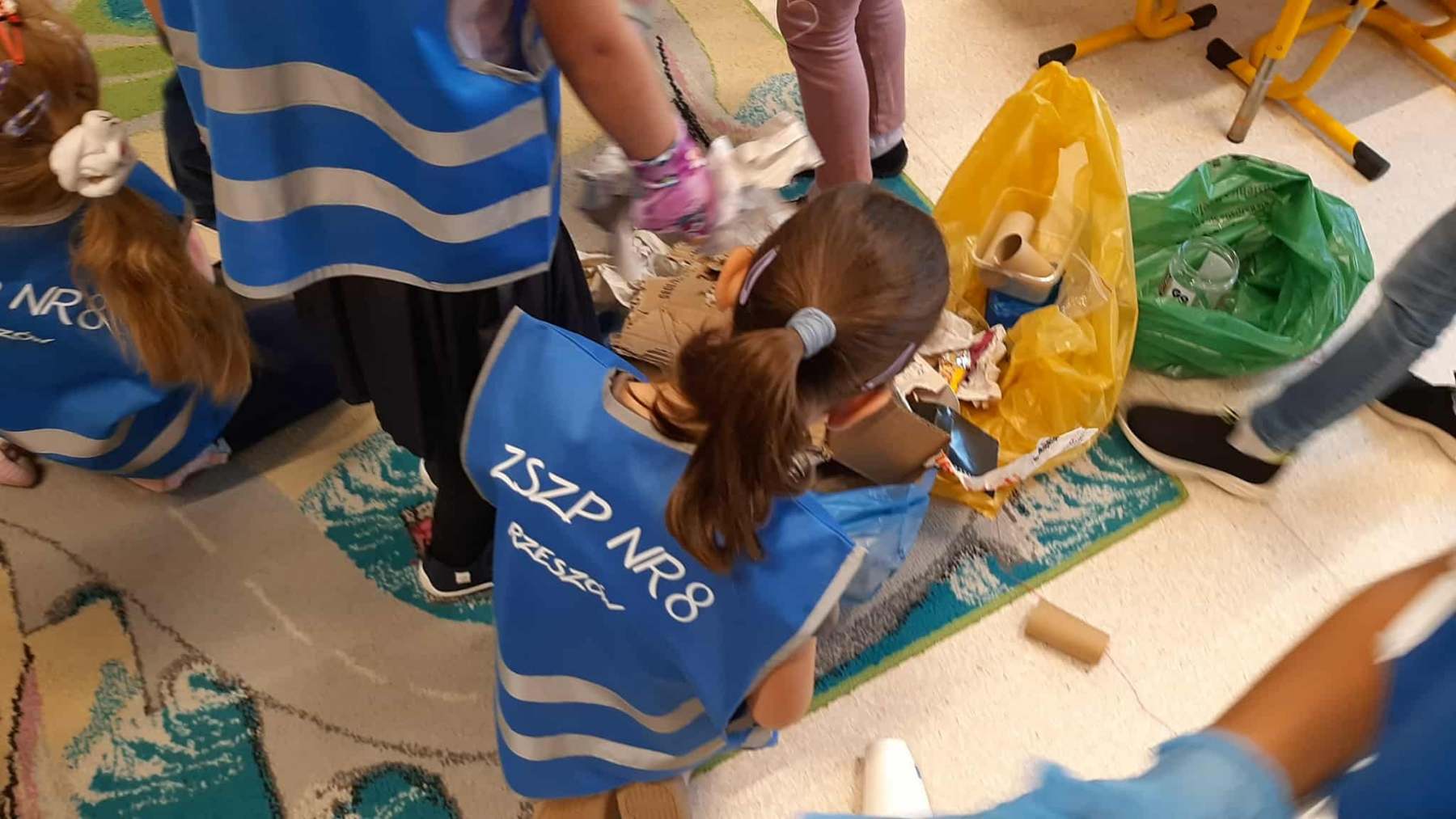 Dzieci dowiedziały się, jak ważne jest dbanie o środowisko i dlaczego warto segregować odpady. Poznały zasady wrzucania surowców do odpowiednich pojemników, a następnie z ogromnym zaangażowaniem wykorzystały zdobytą wiedzę, porządkując swoją salę.