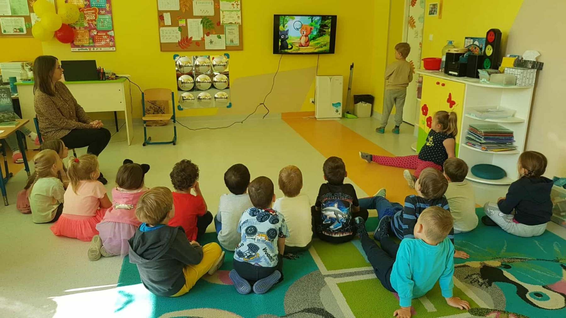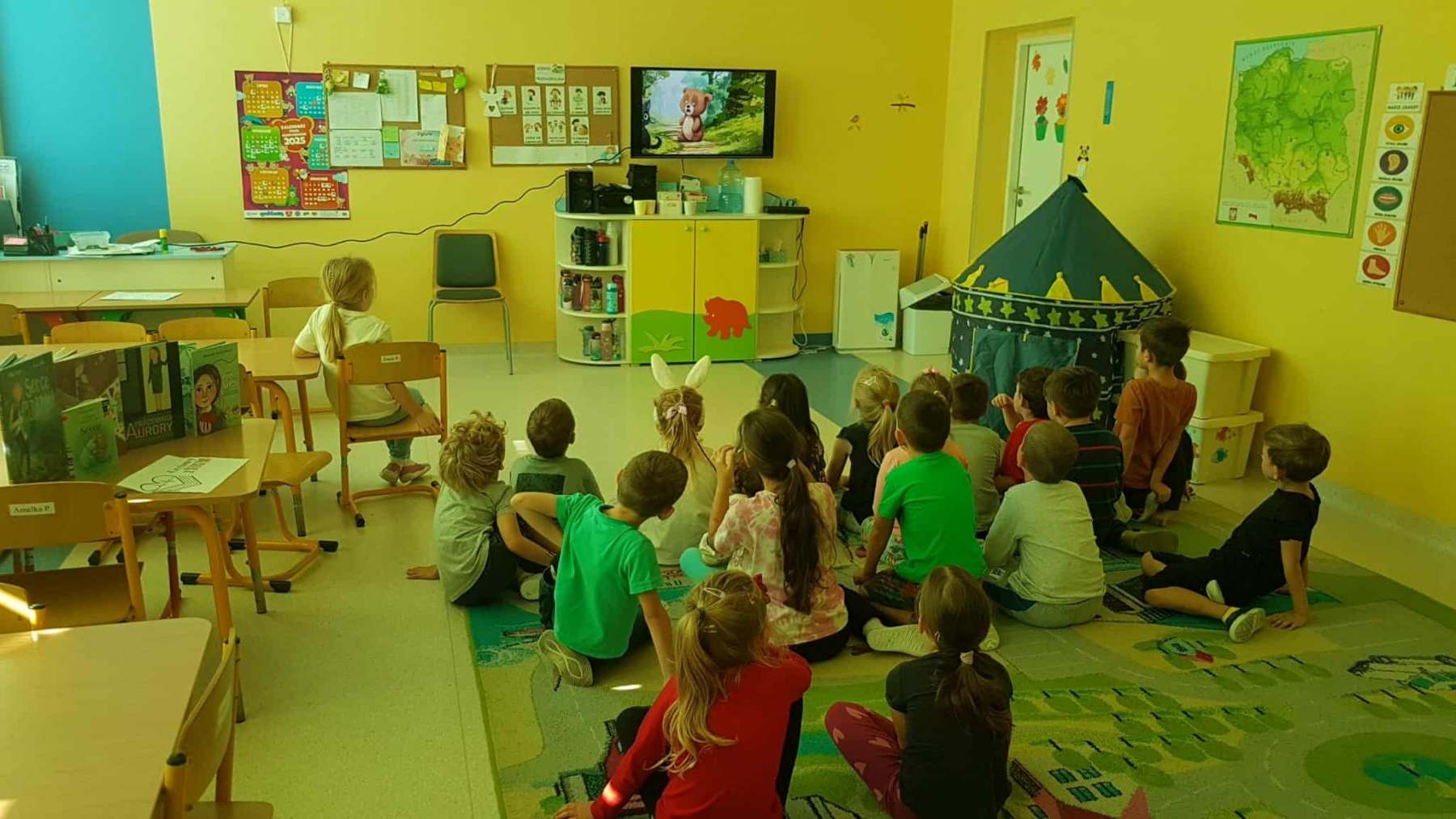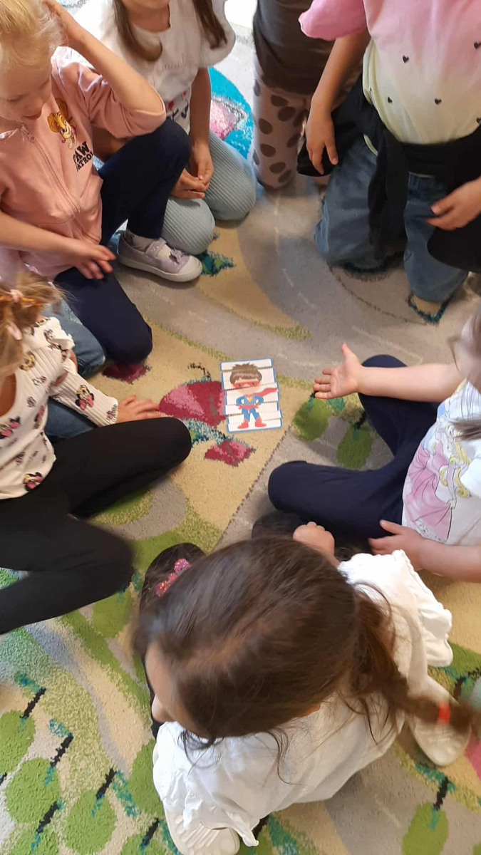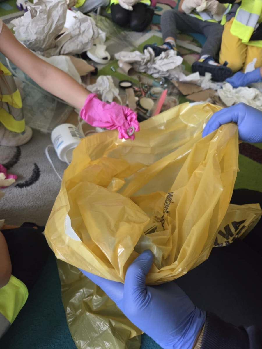 Dzieci dowiedziały się, jak ważne jest dbanie o środowisko i dlaczego warto segregować odpady. Poznały zasady wrzucania surowców do odpowiednich pojemników, a następnie z ogromnym zaangażowaniem wykorzystały zdobytą wiedzę, porządkując swoją salę.