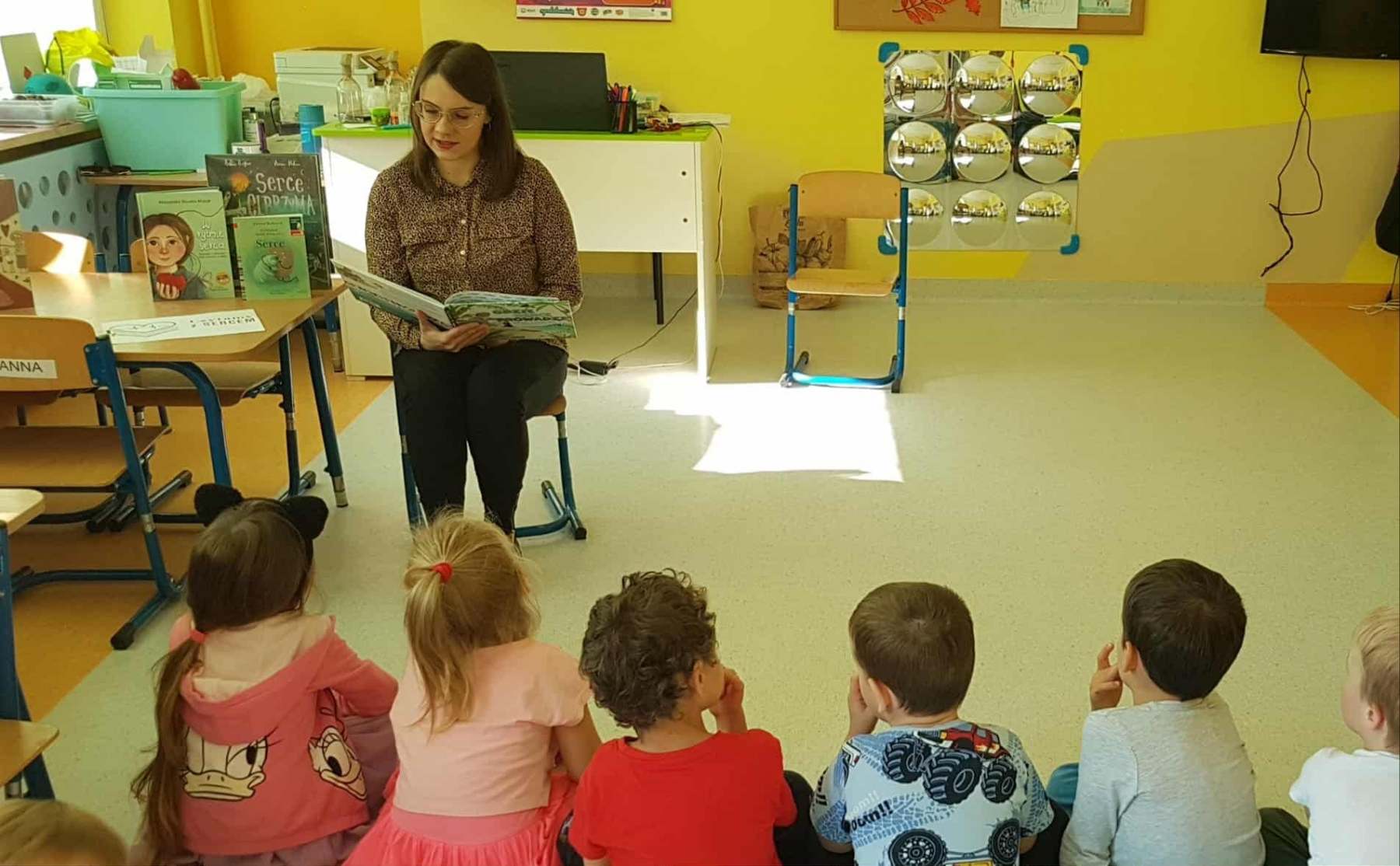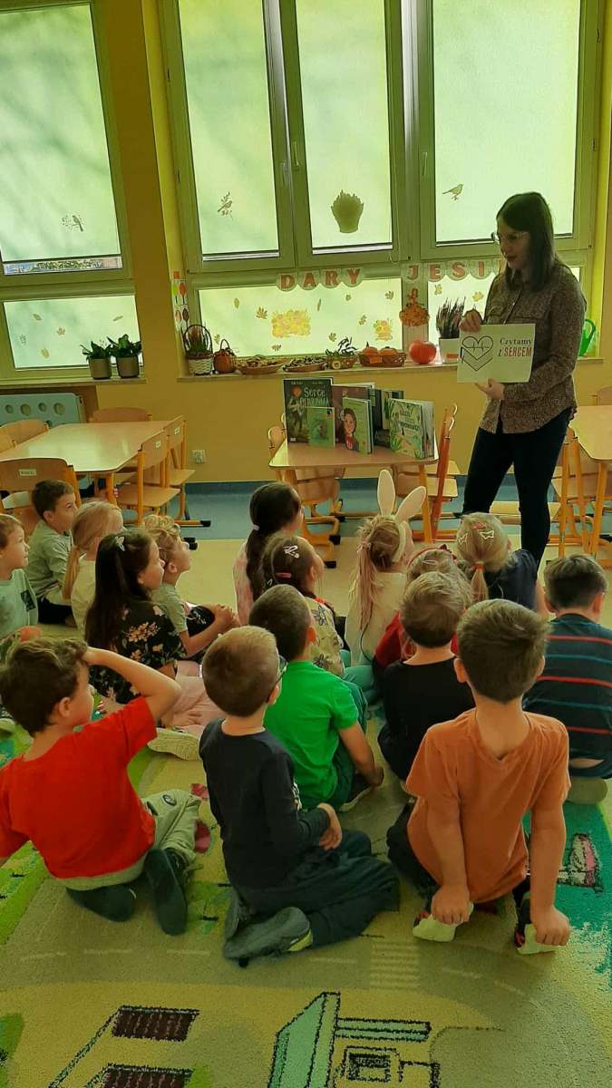 Z okazji Ogólnopolskiego Dnia Głośnego Czytania oraz Światowego Dnia Serca grupy przedszkolne odwiedziła pani bibliotekarka z naszej szkoły. Spotkanie odbyło się w ramach szkolnych obchodów Ogólnopolskiej Akcji Czytelniczej „Czytamy z sercem” i było okazją do popularyzowania czytelnictwa oraz zdrowego trybu życia.