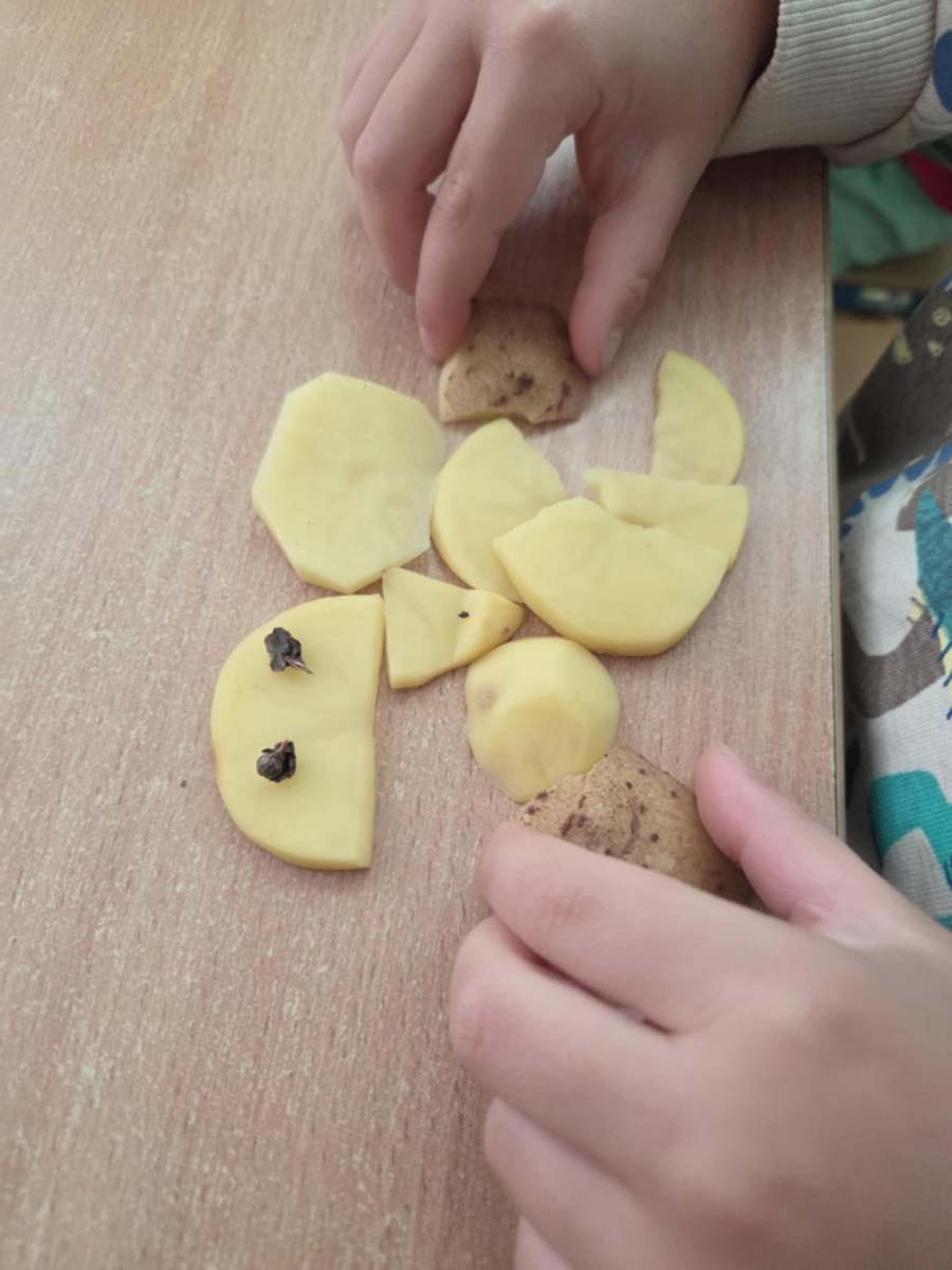 W naszym przedszkolu w dniu 26 września obchodziliśmy „Dzień Ziemniaka”. Dzieci z grupy „Biedronek” i „Żabek” dzieliły się swoimi skojarzeniami związanymi z ziemniakiem oraz opowiadały, jakie potrawy z ziemniaka znają i które z nich lubią najbardziej.