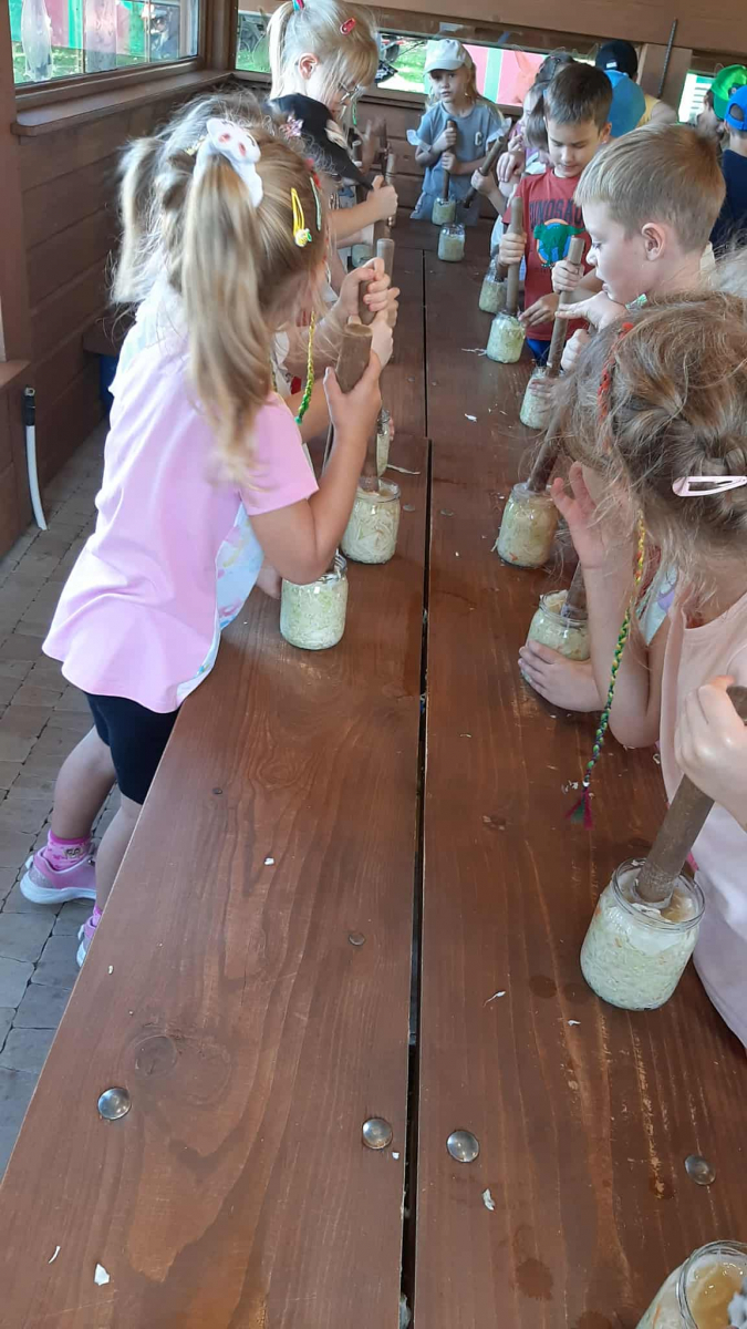 Z okazji Dnia Przedszkolaka grupa „Biedronki” i „Żabki” pojechała na wycieczkę do Zagrody „Szmer” w Godowej. Edukacyjna zagroda cioci Marty dostarczyła dzieciom wielu atrakcji: przejazd bryczką z dziadkiem Staszkiem i obserwacje przyrodnicze, warsztaty kiszenia kapusty, wizyta w warzywniku i zabieranie dyń na polu dyniowym, odwiedziny zwierząt gospodarskich i zabawy na świeżym powietrzu. Z uwagi na fakt, że była to dłuższa wycieczka, dzieci na miejscu zjadły ciepły posiłek- pierogi. To był wyjątkowo piękny i pogodny dzień. Przedszkolaki wróciły do domów z głową pełną wrażeń oraz własnoręcznie ukiszoną kapustą w słoiczku.
