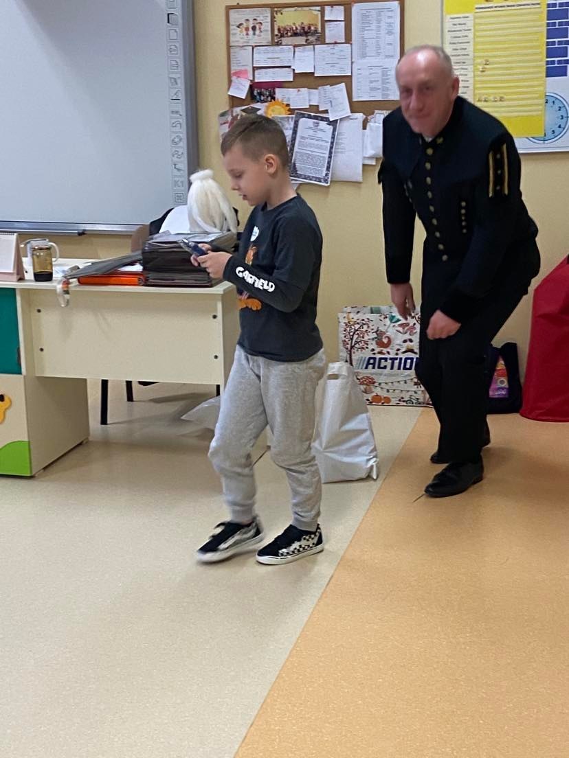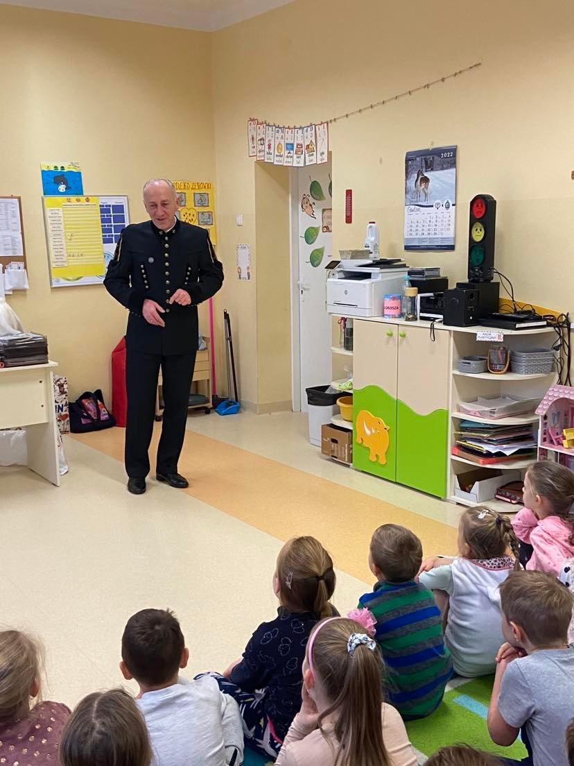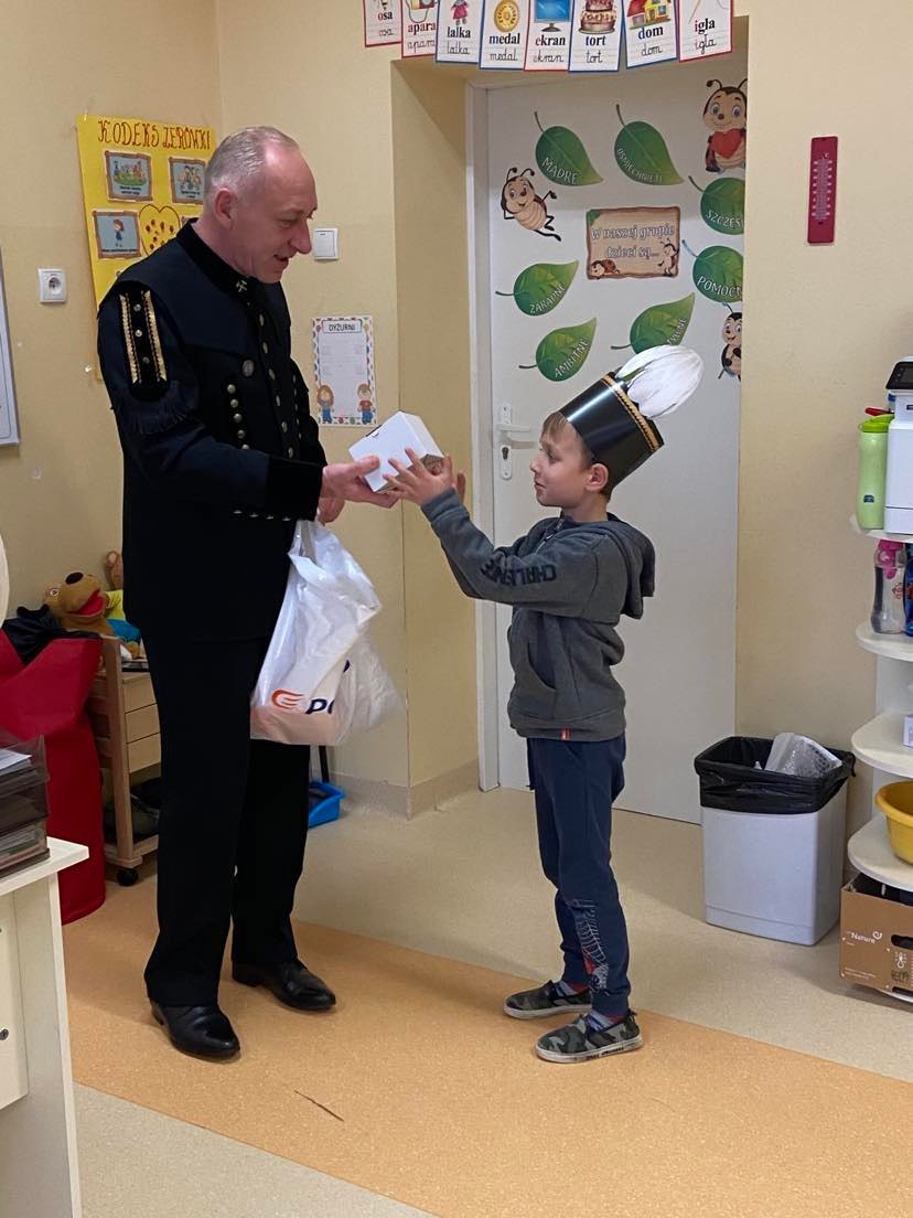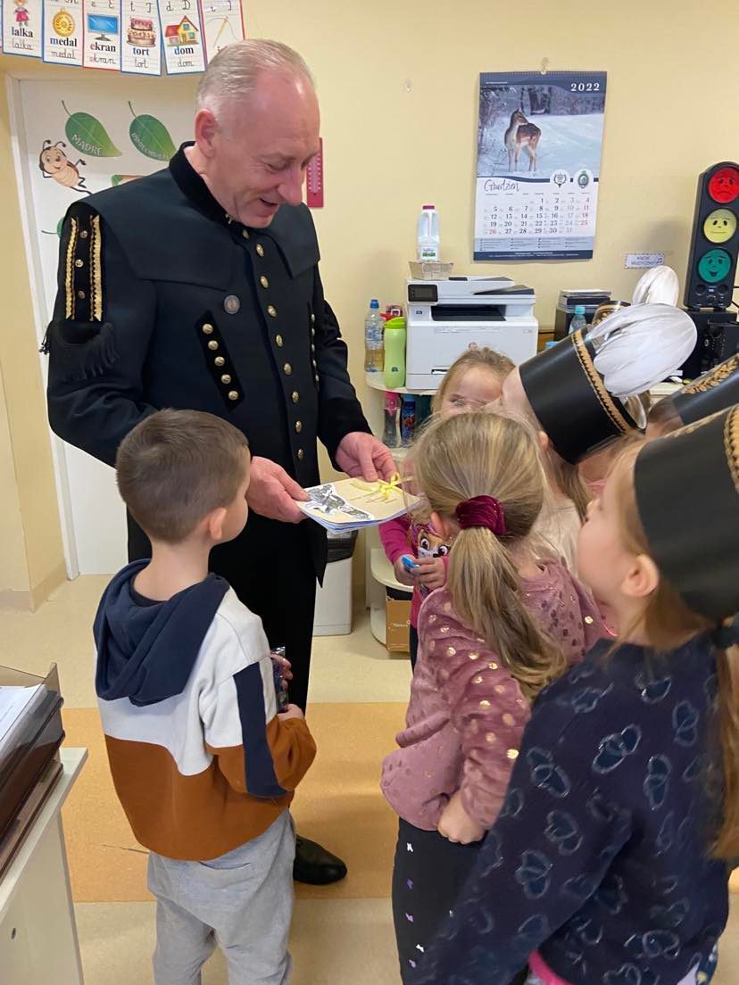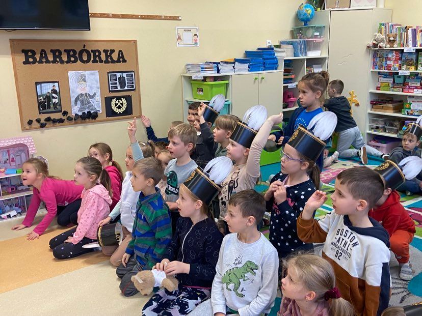 węgiel, ale również przez osoby związane z poszukiwaniem ropy, nafty i gazu. W naszym przedszkolu mieliśmy okazję gościć przedstawiciela górnictwa i porozmawiać m.in. na temat pracy w kopalni. Nasz gość pojawił się w tradycyjnym galowym mundurze górniczym: czarnej marynarce, czarnych spodniach oraz wysokiej, sztywnej czapce z pióropuszem, nazywanej czako. Dowiedzieliśmy się, jakich narzędzi i maszyn używają górnicy wydobywając drogocenną ropę. Każdy z nas mógł z bliska jej się przyjrzeć i powąchać. W trakcie spotkania Pan Jerzy przeprowadził wiele drobnych konkursów na temat pracy górnika sprawdzając pamięć przedszkolaków. Dzieciom bardzo się to podobało, gdyż za każdą prawidłową odpowiedź dostawały nagrodę. Składamy serdeczne podziękowania Panu Jerzowi Kontkowi za poświęcony nam czas oraz ciekawe zajęcia edukacyjne.