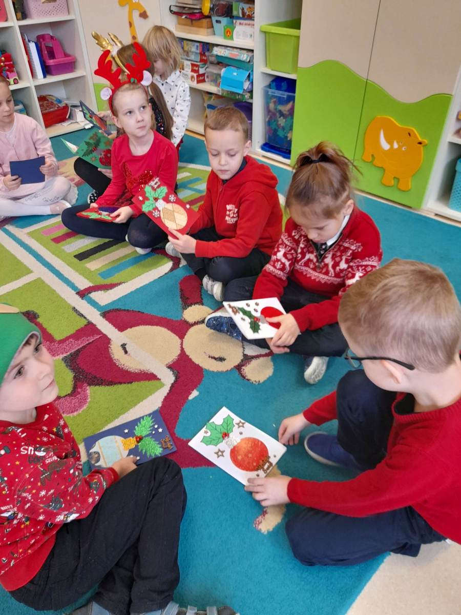Chcąc od najmłodszych lat uczyć dzieci komunikowania się za pośrednictwem listów i pocztówek, nasze przedszkolaki z grupy Biedronek zdecydowały się dołączyć do akcji i rozpocząć pocztówkową przygodę. Dzieci wykonały przepiękne kartki świąteczne, które wraz z życzeniami  zostały wysłane do Publicznego Przedszkola w Husowie do grupy Żabek.  W odpowiedzi nasze Biedronki otrzymały zwrotne pocztówki. W dniu przedszkolnej Wigilii za pośrednictwem mediów społecznościowych dzieci mogły się zapoznać i wspólnie pokolędować.
