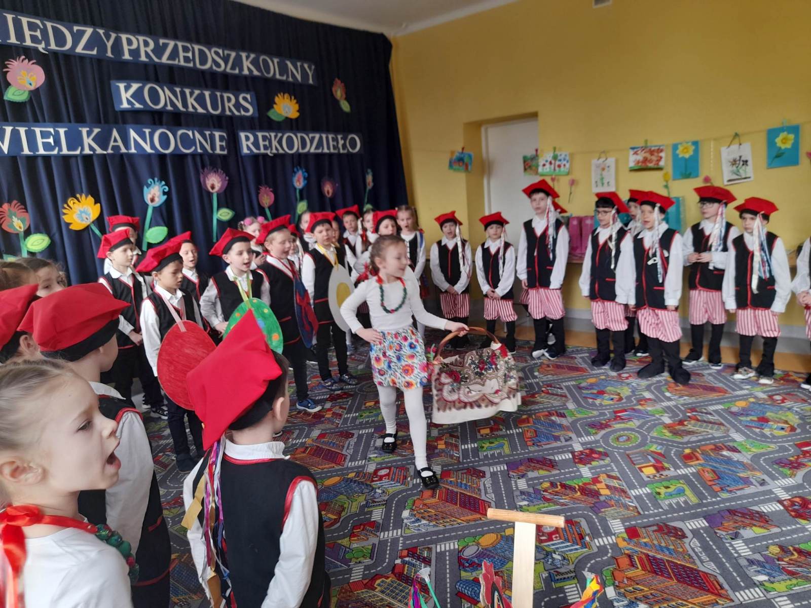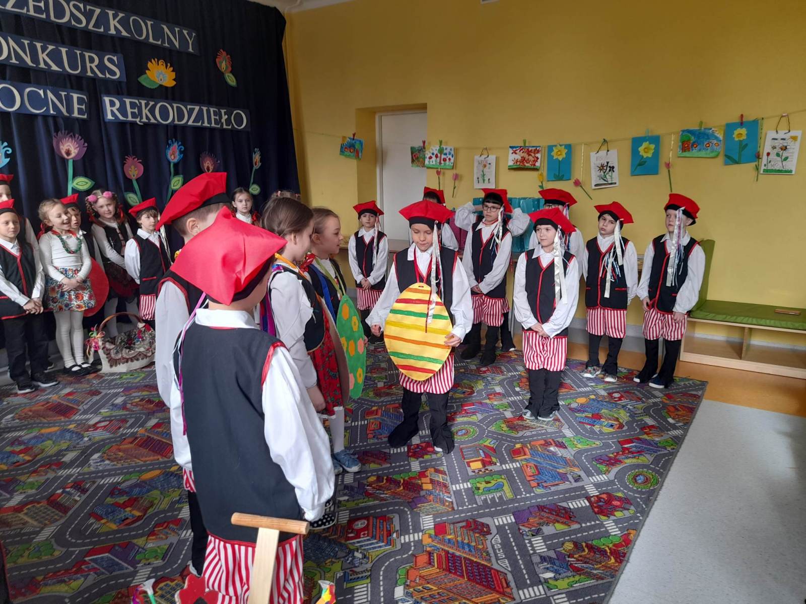 Zaproszeni gości i laureaci przed otrzymaniem nagród  mogli obejrzeć przedstawienie „Pisankowa Moda” przygotowane przez najstarsze grupy przedszkolne „Biedronki” i „Pszczółki”, którego celem było kultywowanie tradycji ludowych.