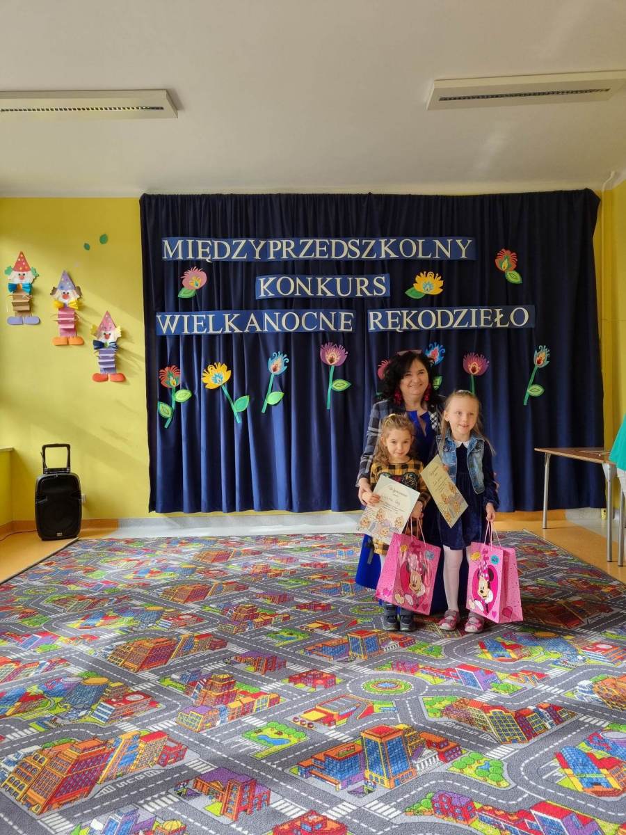 W dniu 04.04.2023r. odbyło się wręczenie nagród laureatom Międzyprzedszkolnego Konkursu „Wielkanocne Rękodzieło”. Organizatorkami były: mgr Ewelina Ostrowska, mgr Agnieszka Kubrak, mgr Katarzyna Przybyło, mgr Beata Mróz i mgr Angelina Tyrka-Pawlarczyk.