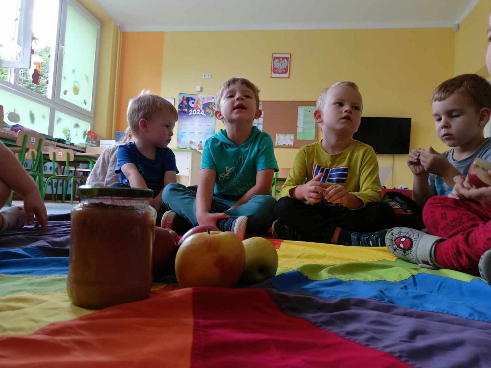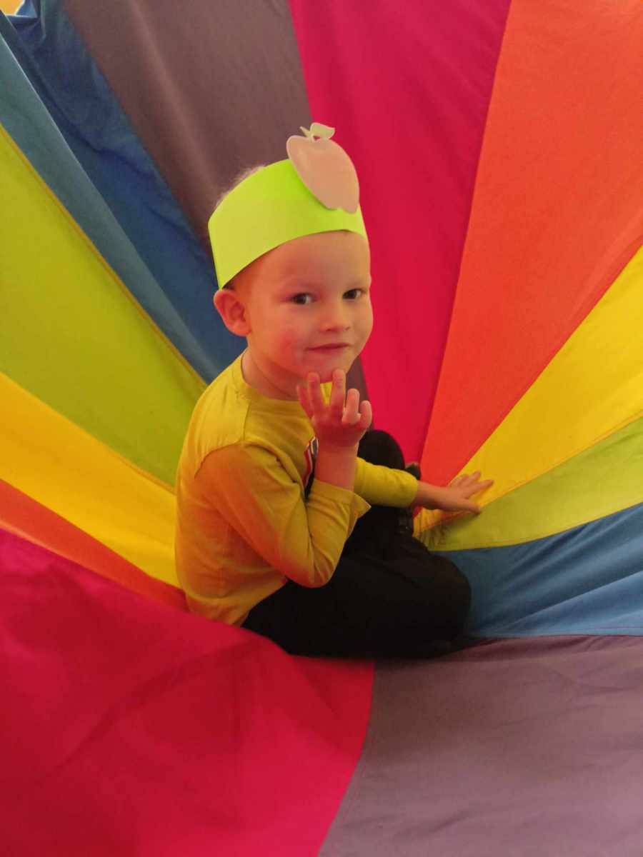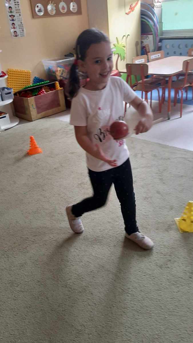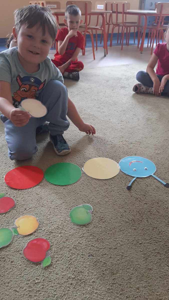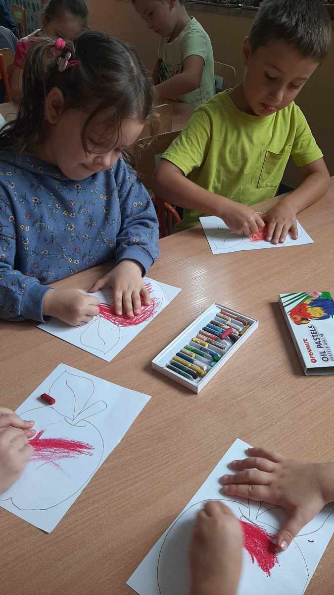 W dniu 27 września obchodziliśmy w naszym przedszkolu „Dzień Jabłka”. Dzieci z grupy „Żabek” i „Biedronek” rozpoznawały i określały kształt, zapach, kolor oraz smak jabłek. Ponadto wzbogacały swoją wiedzę z zakresu walorów zdrowotnych tych smacznych owoców, a także poznały możliwości ich przetwarzania. Wszystkie zabawy tego dnia dominowały pod znakiem jabłka – były piosenki, tańce, zagadki i działania matematyczne. Dzieci świetnie poradziły sobie z przeliczaniem oraz porównywaniem jabłek. Z chęcią wykonały pracę plastyczną a najwięcej emocji dostarczyły im konkurencje zręcznościowe i ćwiczenia ruchowe.