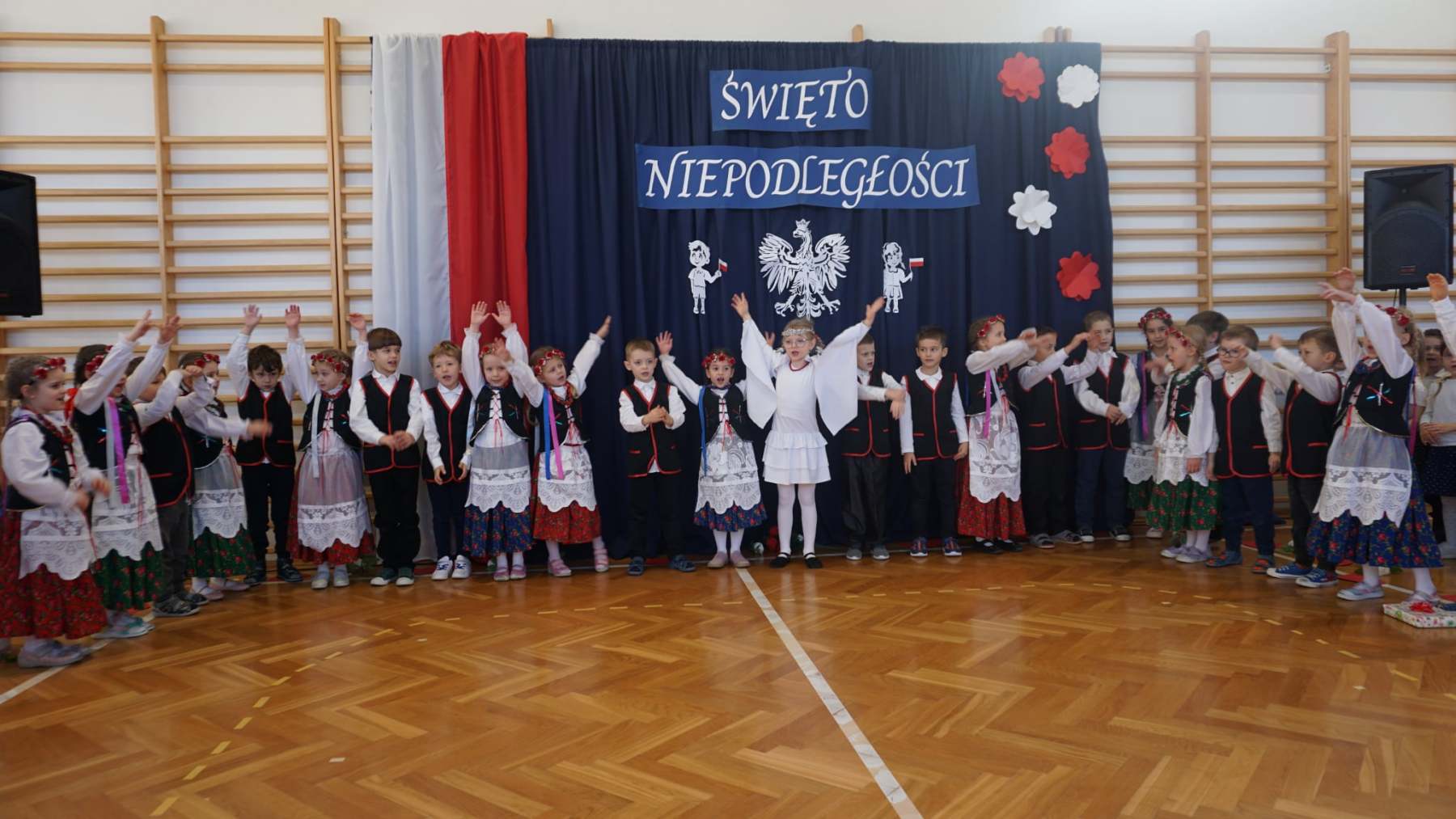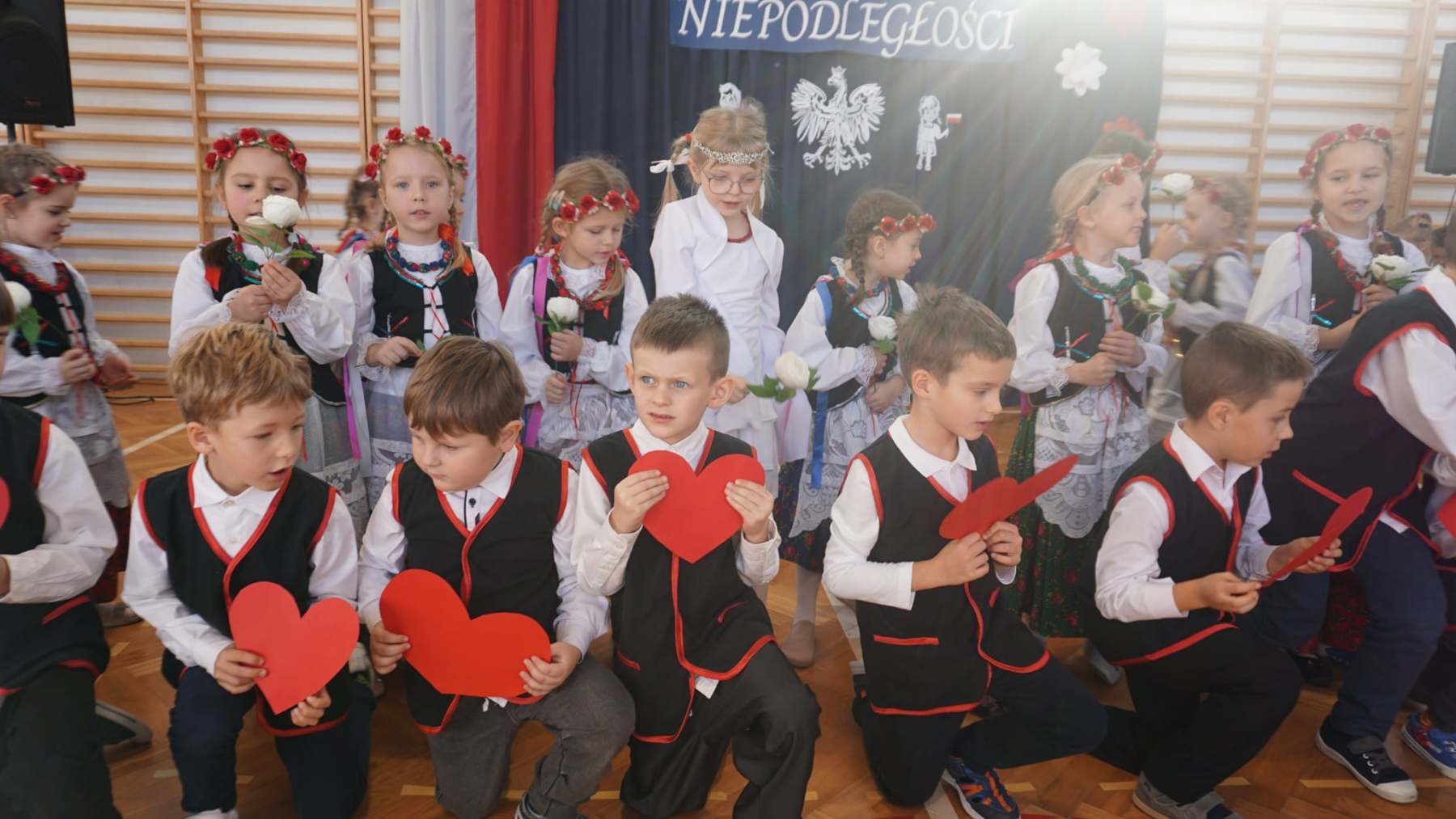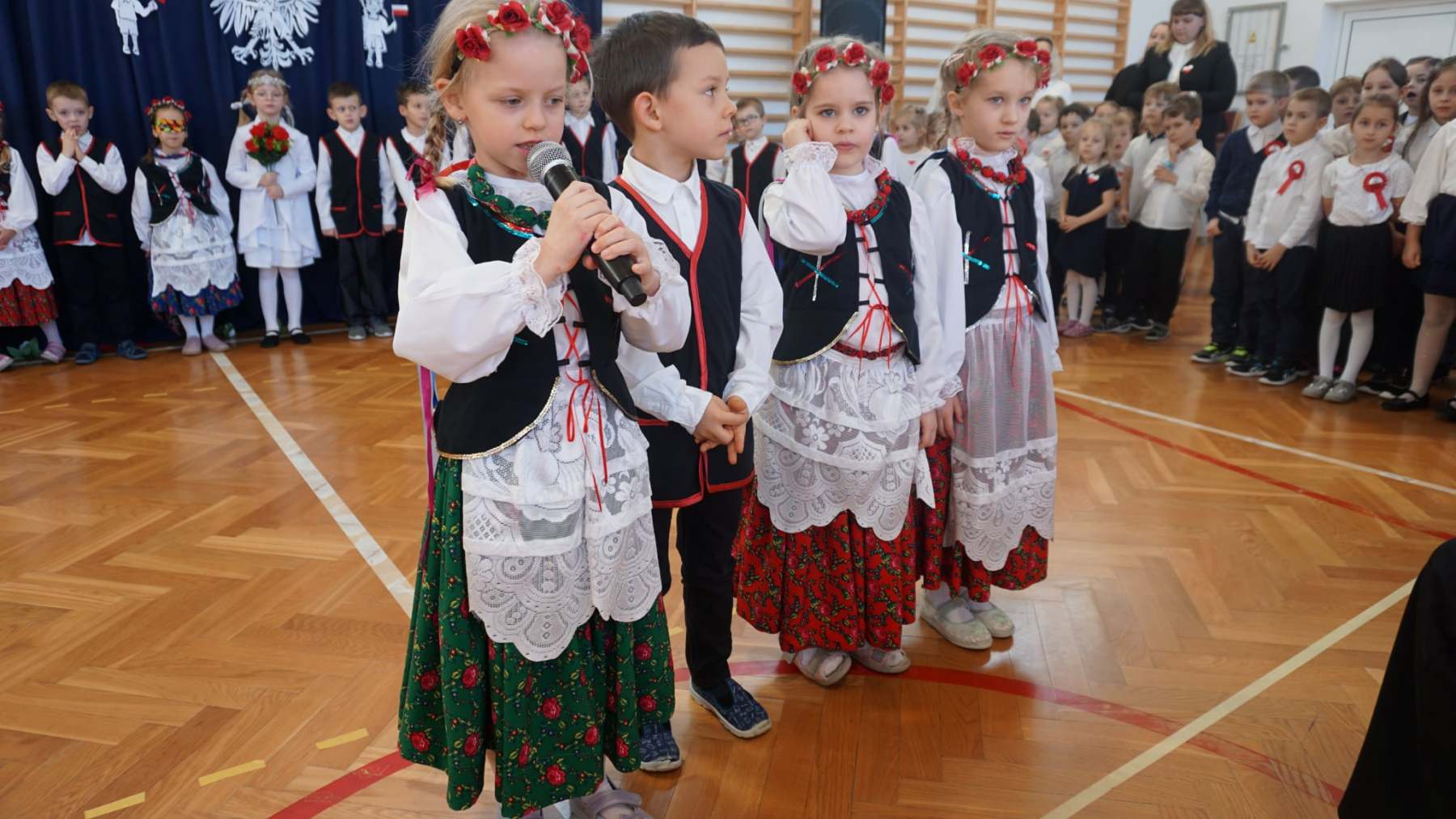 W dniu 07.11.2025 w naszym przedszkolu odbyła się uroczystość z okazji Święta 107 rocznicy Odzyskania Niepodległości. Z tej okazji wszystkie dzieci uroczyście świętowały ten wyjątkowy dla Nas – Polaków dzień. Tego dnia grupa „Żabki” przygotowała piękne przedstawienie, które było transmitowane w telewizji TVP, a uczestnikami tego wydarzenia byli również uczniowie naszej szkoły. W ramach akcji „Szkoła do Hymnu” o godzinie 11:11 wszyscy odśpiewali Hymn Polski. Przedszkolaki wykonały również patriotyczne prace plastyczne. Wszystkie te działania miały na celu kształtowanie u dzieci miłości i przywiązania do kraju ojczystego, jego kultury i tradycji oraz zapoznanie z symbolami narodowymi.